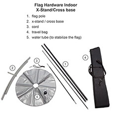 Feather/Teardrop Flags have the option to include indoor or outdoor hardware. The flag material will be neatly folded and packed in a flexible bag. The hardware comes in a black travel bag. Both items will be carton packed together.