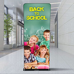 X-Style banner stand comes complete with full color printed banner. Economical, easy and attractive..