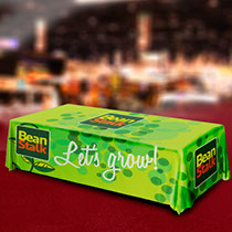 Custom printed table cloths, table throws & table runners. Full color, edge to edge fabric printing.